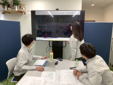 初日は、会社概要の説明からスタートし、当社が大切にしている「安全」「品質」、そして現場で求められる考え方についてお伝えしました。その後、図面の見方や電気設備の基本的な仕組みについて学び、実務に近い形で理解を深めていただきました。
