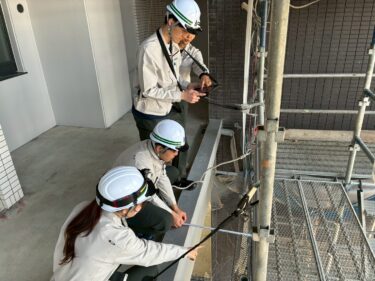 午後からは現場見学を行い、施工中の現場にて設備の配置や施工方法、作業の流れなどを体感していただきました。ヘルメットや安全帯を着用し、現場の緊張感や安全管理の重要性についても学んでいただいております。